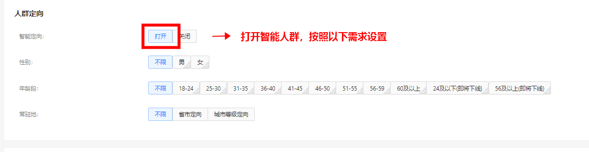 按照需要设置,建议尽可能放开人群,不要做过多的限制