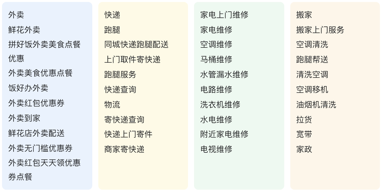 增长赛道:外卖、快递物流、维修服务(空调/冰箱维修)、家政服务(家电清洗)、餐饮(奶茶冷饮),需关注出价及基建,进一步开启全局智能投放。