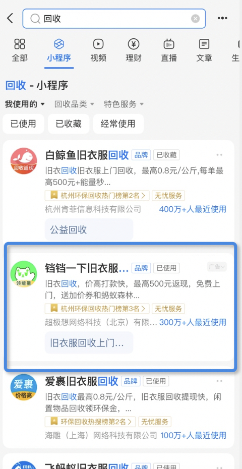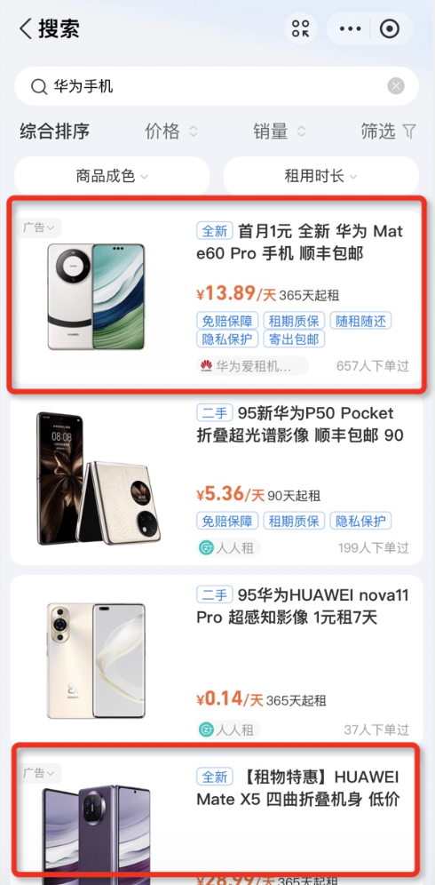 搜索推广概述:支付宝灯火搜索效果推广,是基于搜索竞价词的搜索直投产品。广告主可在支付宝搜索上进行小程序、生活号、资讯内容、商品推广投放,以用户在搜索结果页上的点击作为计费点。目前已支持小程序推广投放、商品推广、销售线索推广投放,更多投放目标类型逐步开放中。搜索广告样式示例如下:小程序推广(主搜结果页) | 销售线索收集(H5)样式(主搜结果页) | 商品推广样式(芝麻租赁频道) |